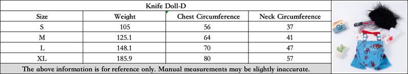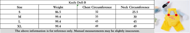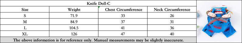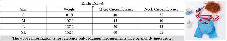 Transform your furry friend into a spooky, funny knife killer with this Halloween costume! Perfect for small dogs, it's designed for Halloween parties and fall season. The outfit includes a unique knife-shaped accessory, adding a touch of humor to the scary look. It's a fun way to celebrate the spooky season while keeping your pet safe and stylish.