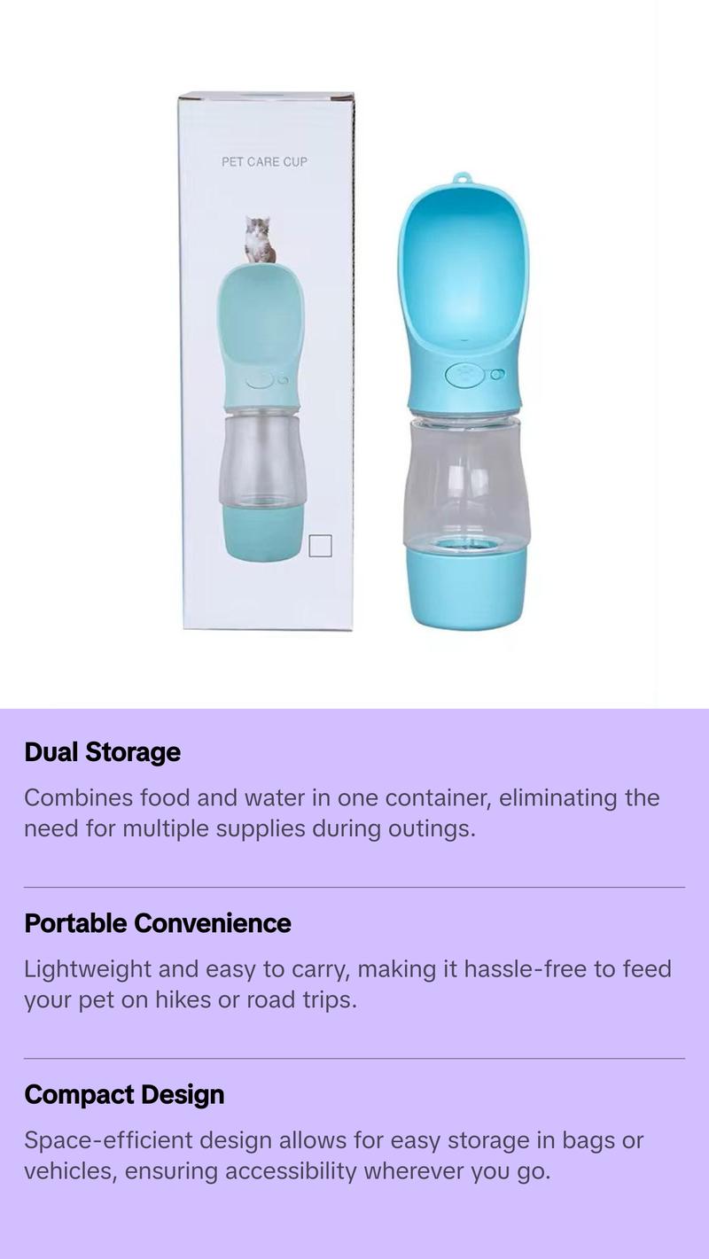 Easily feed your pet on-the-go with our Portable Dog/Cat Food and Water container. This convenient container allows you to store both food and water in one place, making it perfect for hikes, road trips, or everyday outings. Keep your furry friend happy and well-fed wherever you go!
